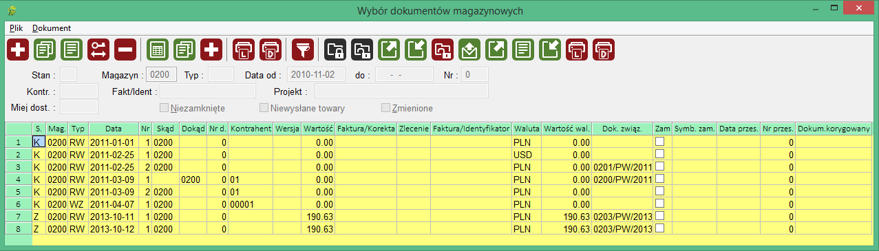 . Pojawia się okno "Wybór dokumentów magazynowych":
