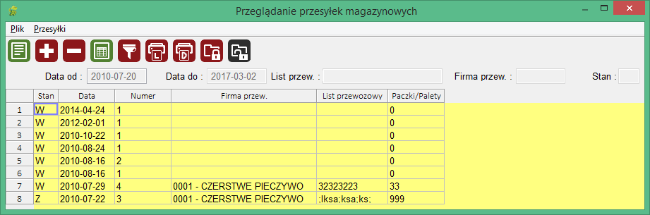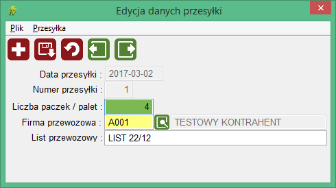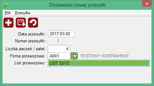 Z okna tego możemy również dodać kolejną przesyłkę naciskając klawisz <Num+> lub wybierając ikonę