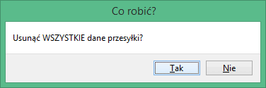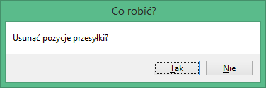 . System zażąda potwierdzenia chęci usunięcia pozycji przesyłki wyświetlając okno:
