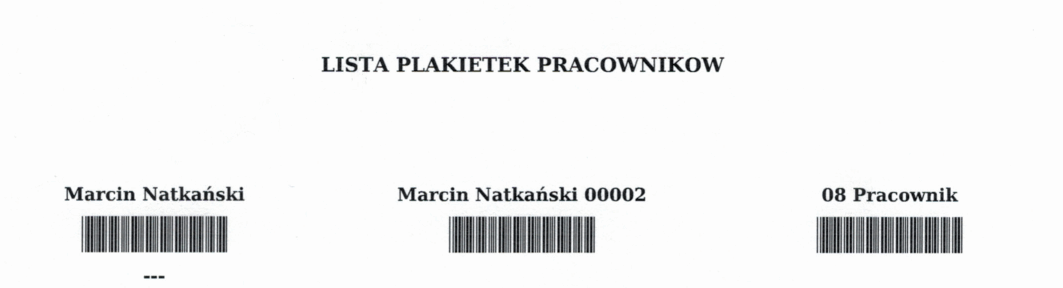 Kody kreskowe pracowników niezbędne do pracy z modułem do rejestracji czynności można wydrukować z poziomu kartoteki osobowej. Szczegółowe informacje na ten temat znajdują się w Dokumentacji Użytkownika systemu Anakonda, w dziale Kartoteka Osobowa.