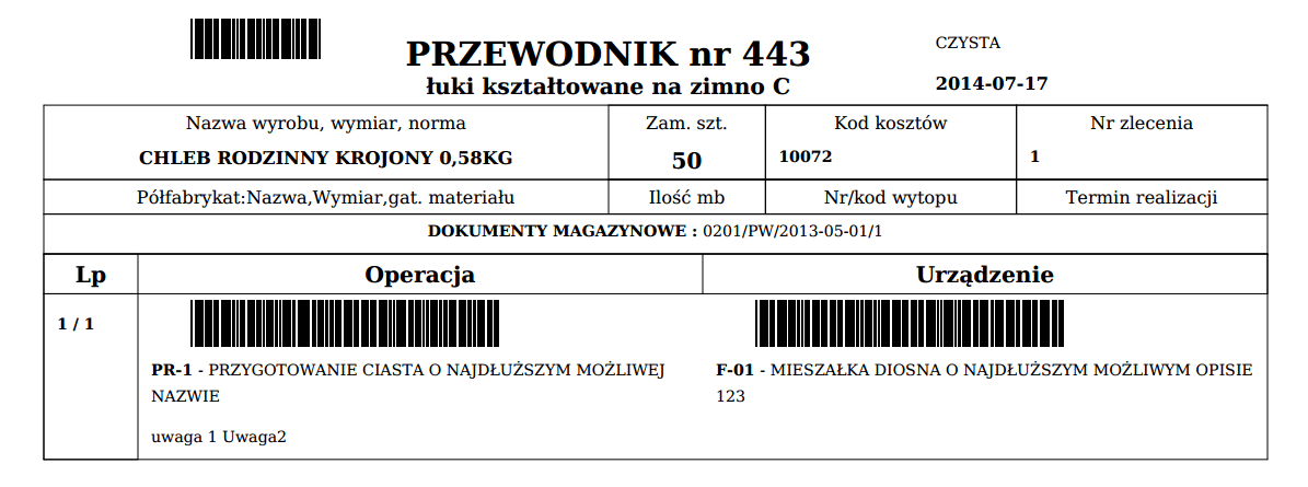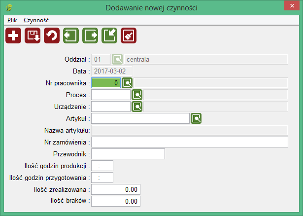 Jeżeli na podstawie wpisanych w kontrolki danych system jest w stanie rozpoznać proces z planu produkcji, dokłada opisaną czynność do rozpoznanego procesu.