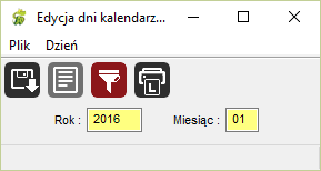 Po podaniu roku i miesiąca otrzymamy okno "Edycja dni kalendarza ...":